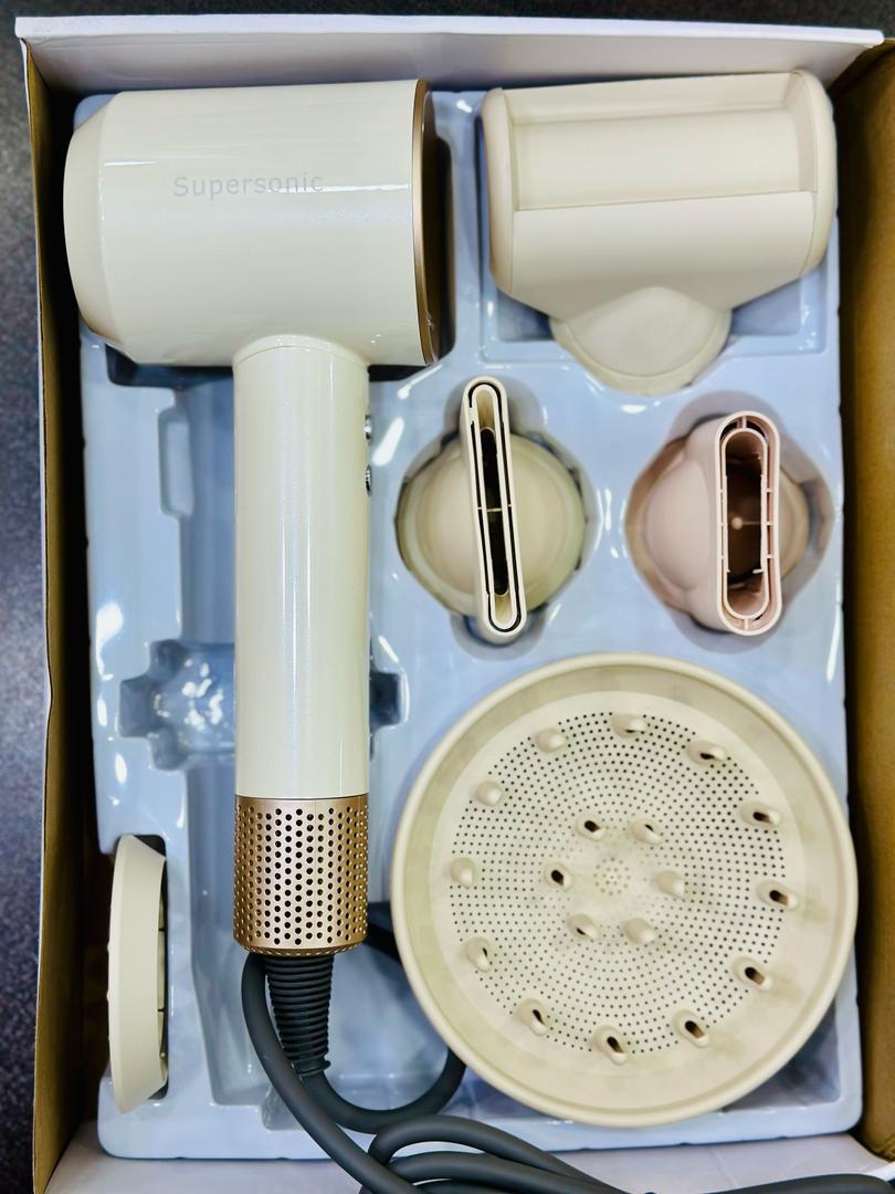 سشوار دایسون مدل Dyson Supersonic HD07 یکی از قدرتمند ترین سشوار های موجود در دنیا می باشد که طراحی بسیار زیبا و دارای بدنه ای با کیفیت است . این سشوار که جریان هوای بسیار قدرتمندی برای خشک کردن موها ایجاد می کند مجهز به موتور قدرتمند v9 می باشد که 6 برابر از دیگر سشوار های موجود در بازار قوی تر است . به دلیل استفاده از فناوری Air multiplier هوای کنترل شده با فشار بالا را ایجاد می کند که این تکنولوژی جهت خشک شدن سریع موها است . به لطف فناوری هوشمند توزیع دما و حالت دهنده یونی سشوار به مو ظاهر طبیعی و براق و ابریشمی می بخشد و همچنین تارهای مو را بازسازی و نرم میکند . در ساخت این مدل سشوار دایسون از فناوری توزیع یکنواخت دما استفاده شده که 40 بار در ثانیه دما را اندازه گیری میکند و از آسیب رسیدن به موها جلوگیری می کند . این مدل آخرین مدل شرکت دایسون می باشد